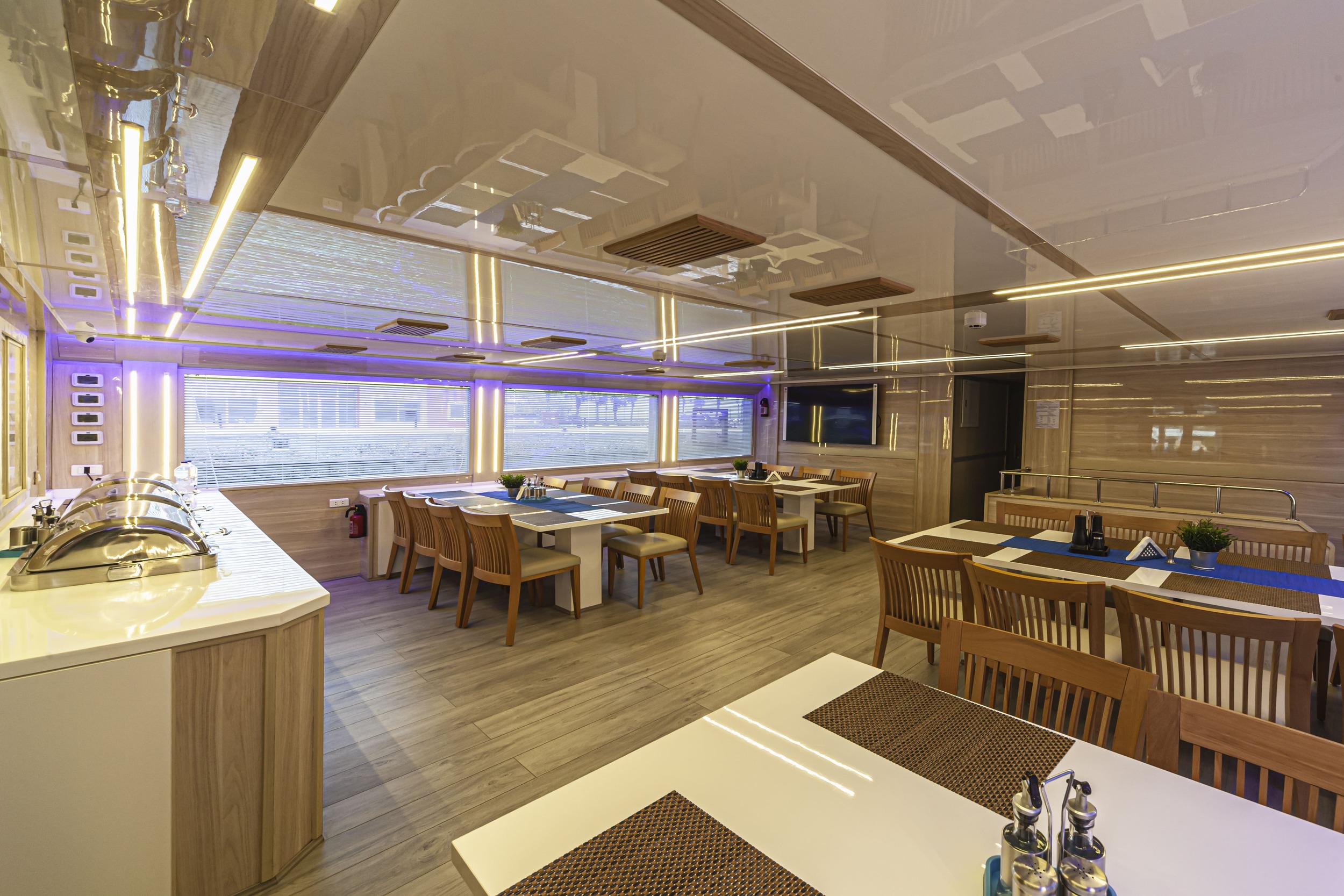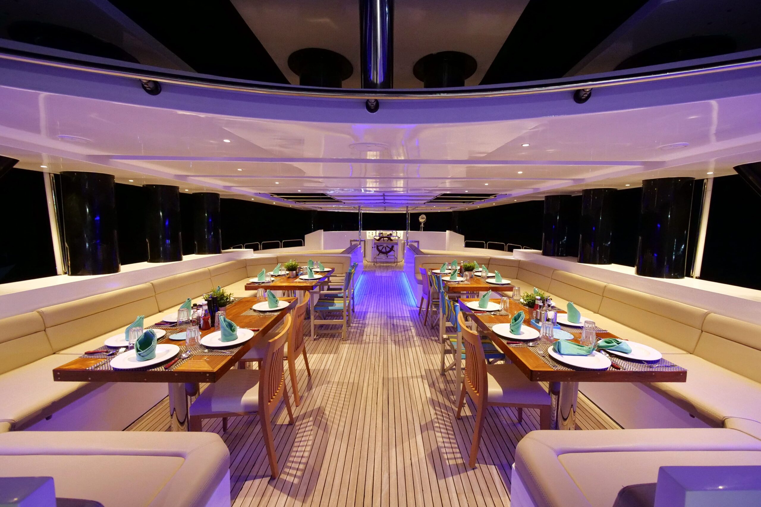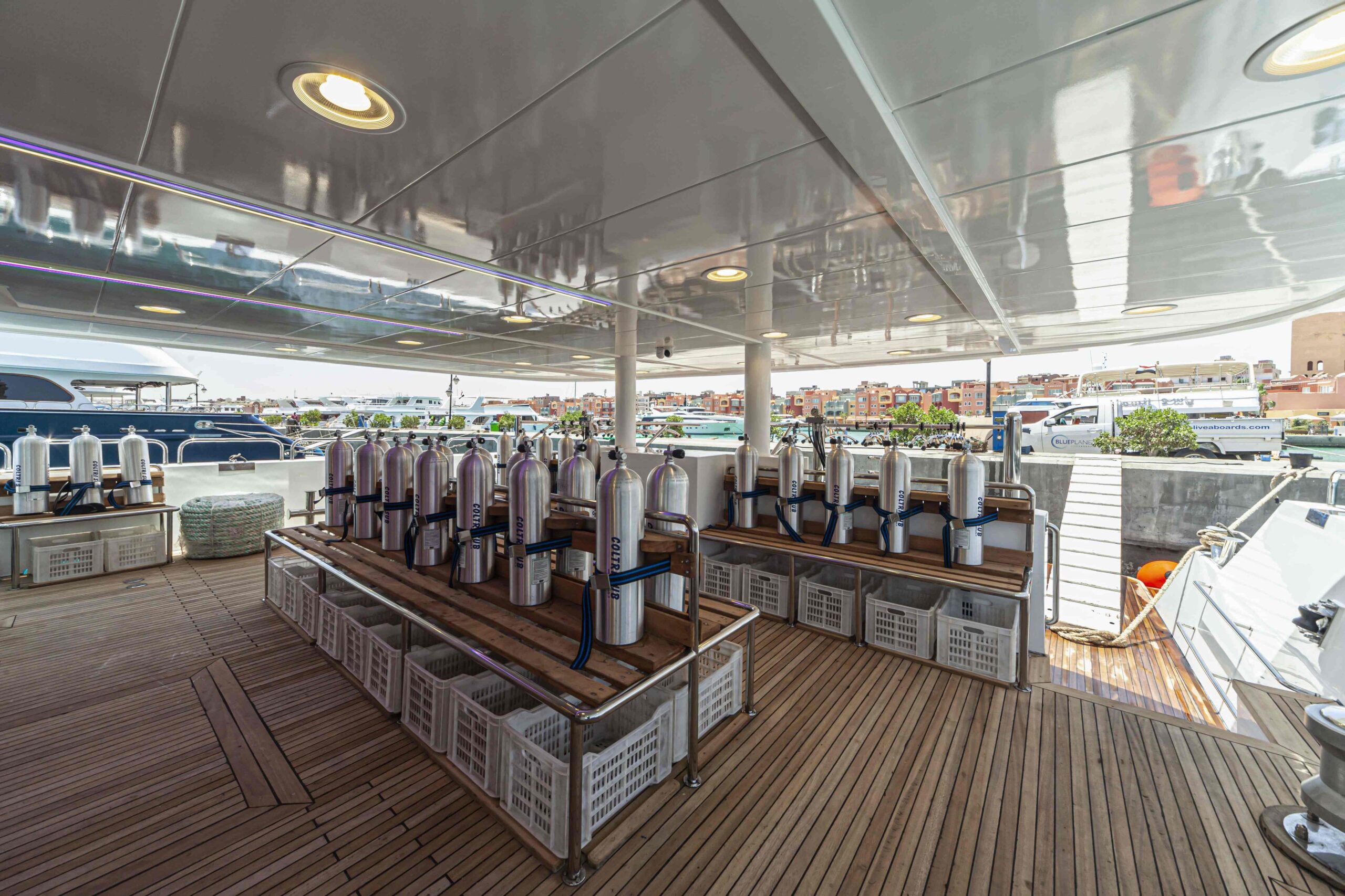 Il liveabord dispone di 11 cabine sia doppie che Twin, 2 di queste possono aggiungere un terzo letto e ospitare fino a tre ospiti. Tutte le cabine sono dotate di aria condizionata, bagno privato e armadio.