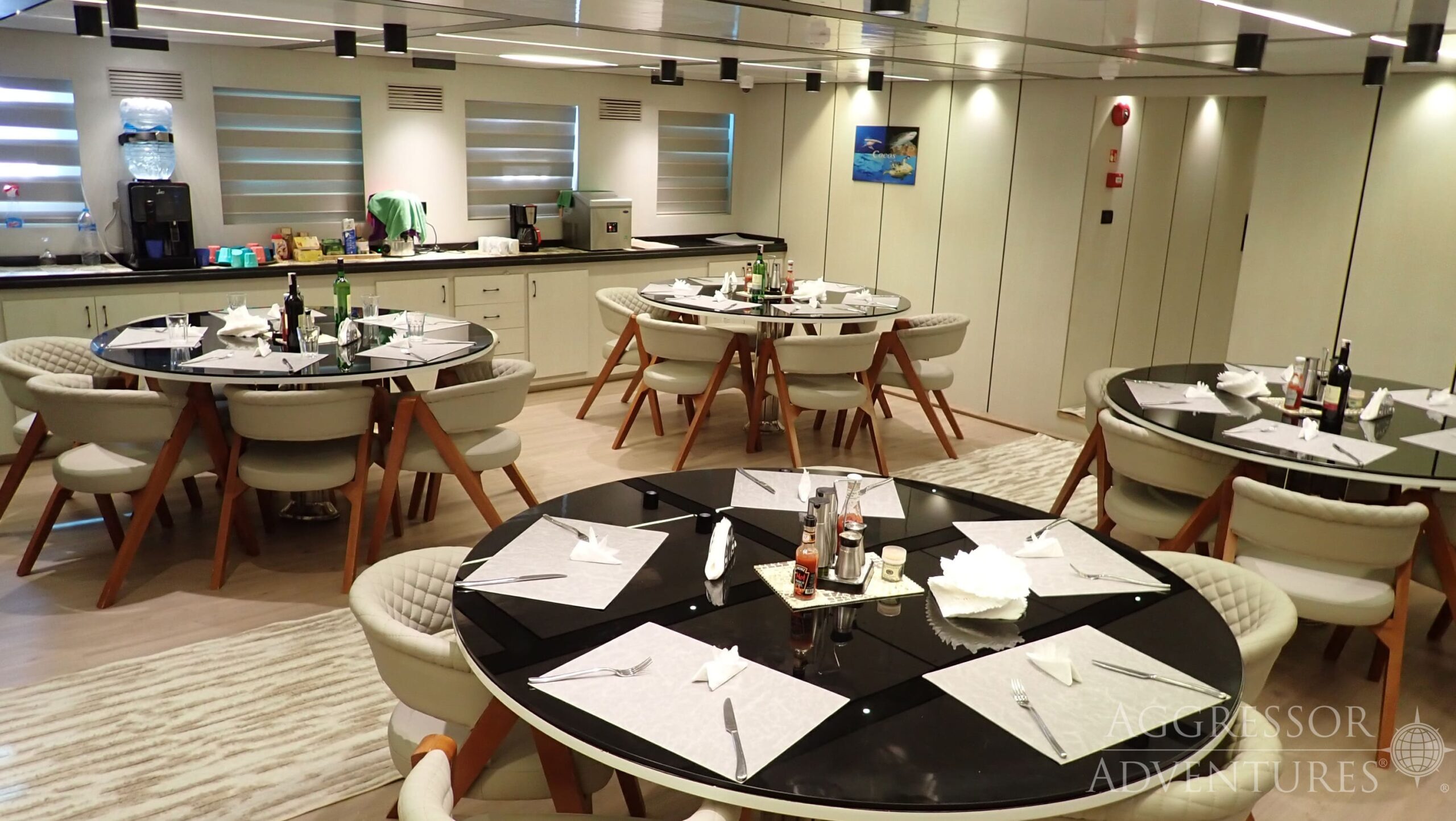 Tutte le cabine dispongono di Aria condizionata, bagno/doccia privati, mobiletto con specchio, asciugacapelli, asciugamani freschi, cassetta di sicurezza, minifrigo, rilevatori di fumo, impianto antincendio e impianto audio con controllo del volume. Ogni cabina è dotata di TV/lettore multimediale. Gli ospiti possono collegare i propri computer allo schermo TV per modificare foto e video subacquei.