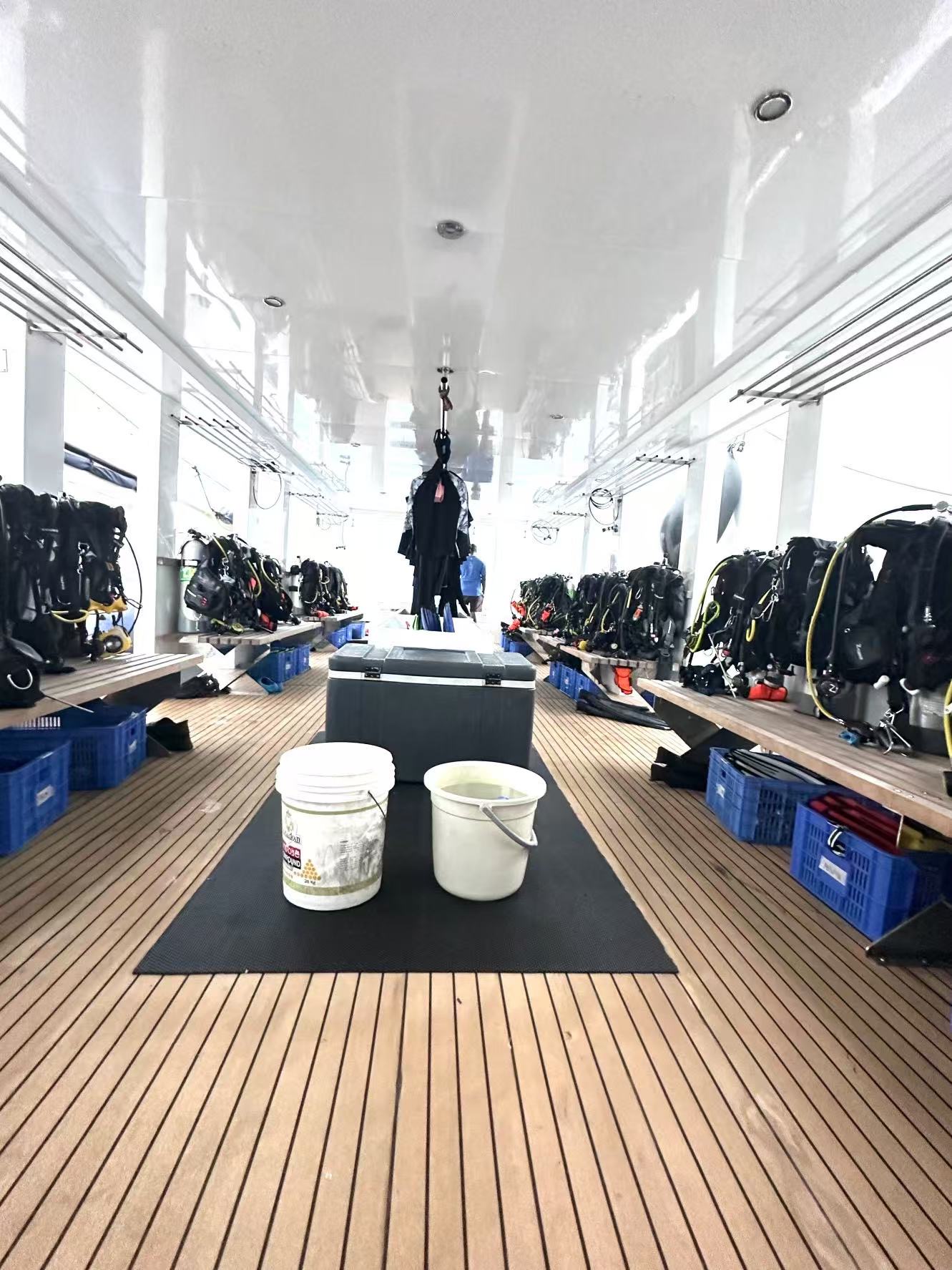L’imbarcazione offre una varietà di comfort, tra cui un ponte prendisole, una zona pranzo, una sala macchine fotografiche, un’area immersioni e una serie di cabine con servizi di base. Sono disponibili anche attrezzature per immersioni e attività non subacquee come kayak e paddleboard, oltre al noleggio di attrezzature e servizi di massaggio.