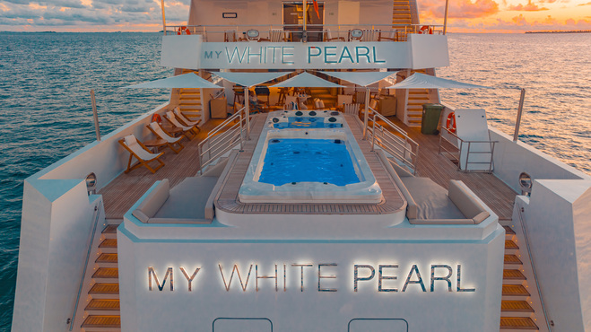 Il M/Y White Pearl è un’imbarcazione eccezionale di 56,4 m (183 piedi), con 13 lussuose cabine, tra cui 1 Master Suite, 2 Junior Suite e 10 Cabine Deluxe, in grado di ospitare fino a 26 ospiti. Costruito nel 2020, promette un’esperienza di immersione indimenticabile nelle magnifiche acque delle Maldive.